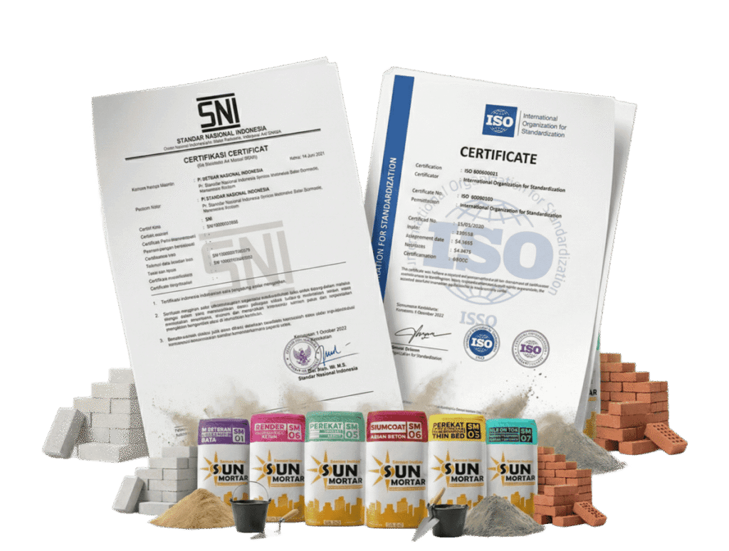 Sun Mortar berkomitmen menghadirkan material yang memenuhi kriteria pengadaan nasional dan standar manajemen internasional.